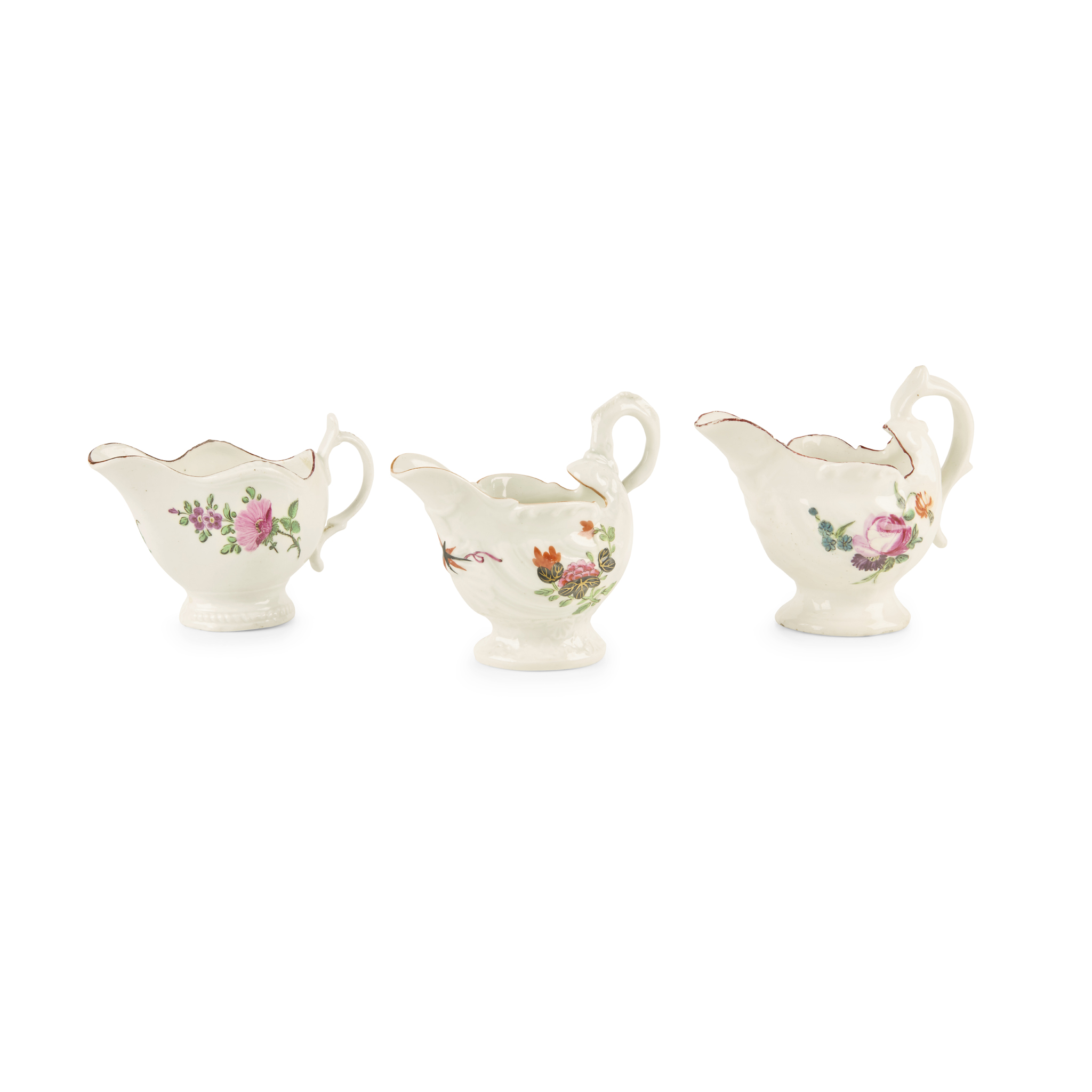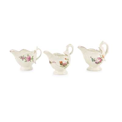 THREE ENGLISH PORCELAIN 'DOLPHIN EWER' CREAM BOATS