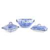 TWO SPODE BLUE AND WHITE PRINTED VEGETABLE TUREENS WITH COVERS AND A SOUP TUREEN FROM 'THE INDIAN SPORTING SERIES'