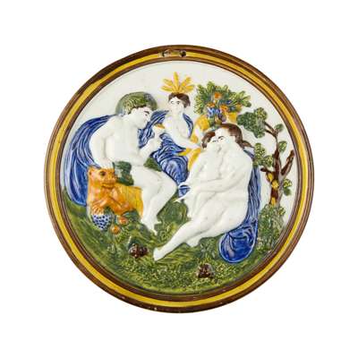 Note: Greenock plaque with label for the Rous Lench Collection. For a similar example see John and Griselda Lewis, ‘Prattware’, 2nd edition, p. 111