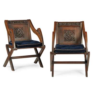 PAIR OF SCOTTISH VICTORIAN CARVED OAK GLASTONBURY CHAIRS