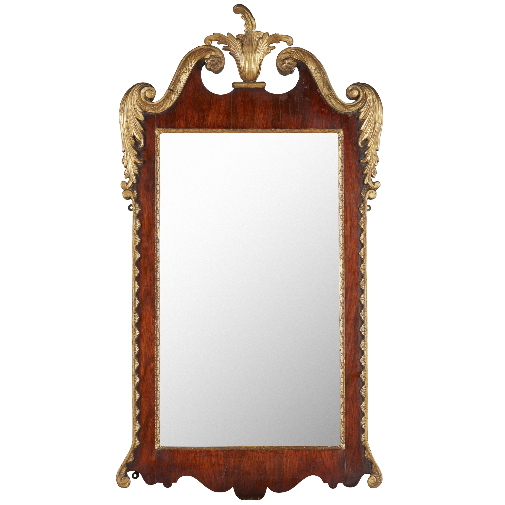 GEORGE II WALNUT AND PARCEL-GILT MIRROR