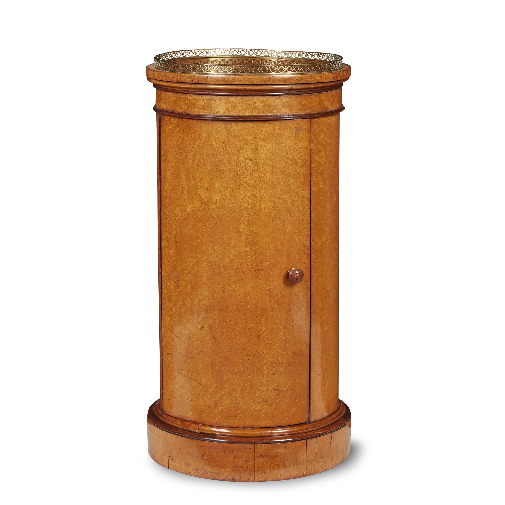 EARLY VICTORIAN BIRDSEYE MAPLE AND BRASS TORCHERE PEDESTAL CABINET