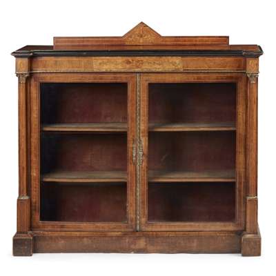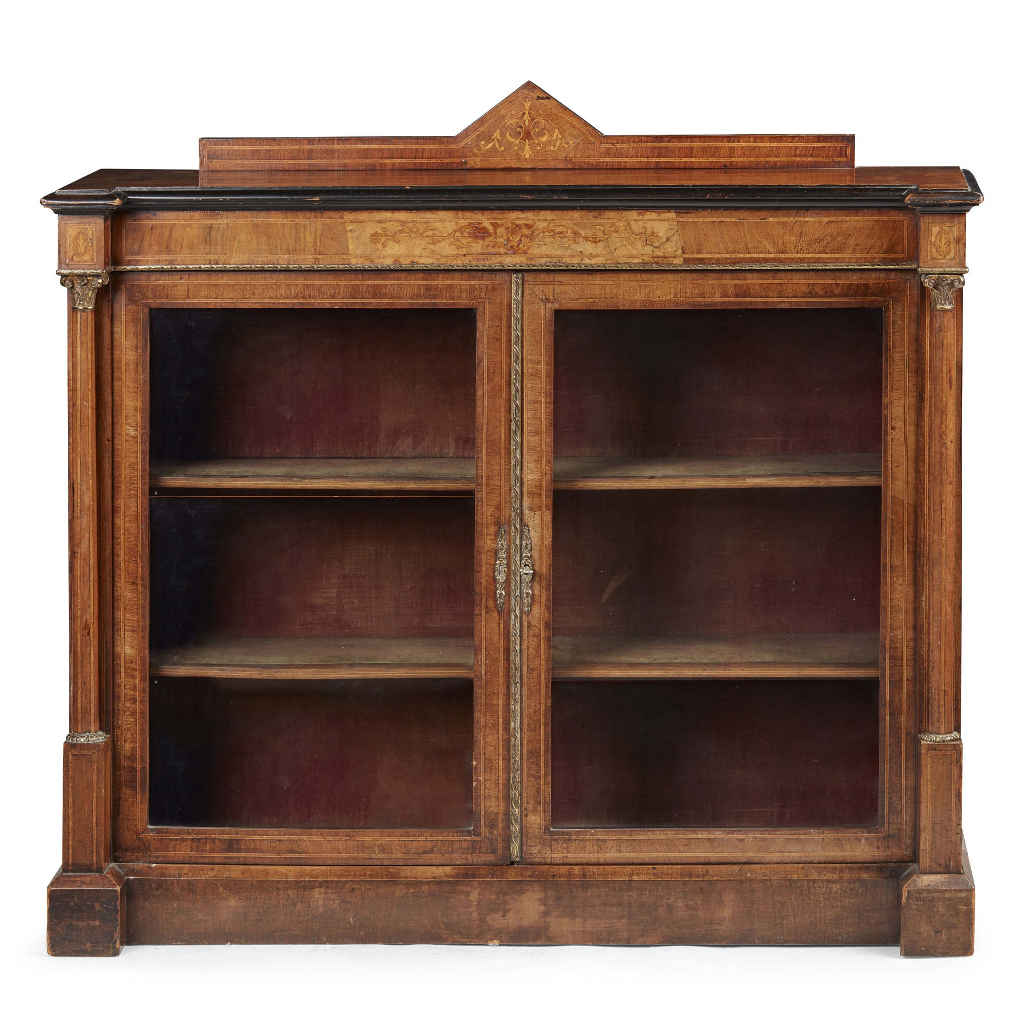 VICTORIAN WALNUT, EBONISED AND INLAID CREDENZA