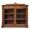 the galleried top over a pair of glazed doors opening to shelves, flanked by pillars with brass Corinthian capitals, raised on a plinth base