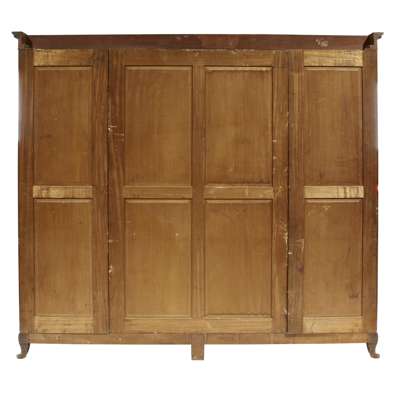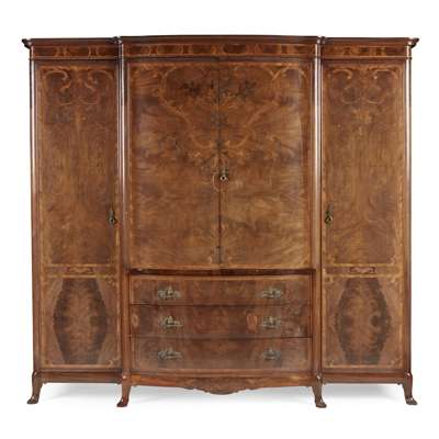 GEORGE III STYLE MAHOGANY, WALNUT AND FRUITWOOD WOOD MARQUETRY TRIPLE WARDROBE, BY WHYTOCK & REID OF EDINBURGH