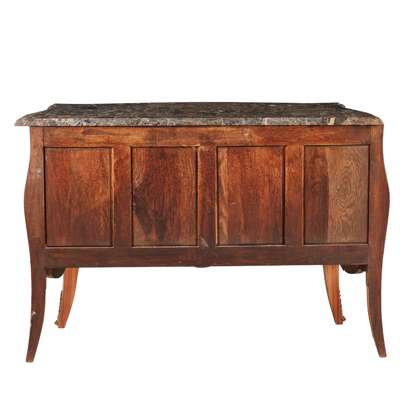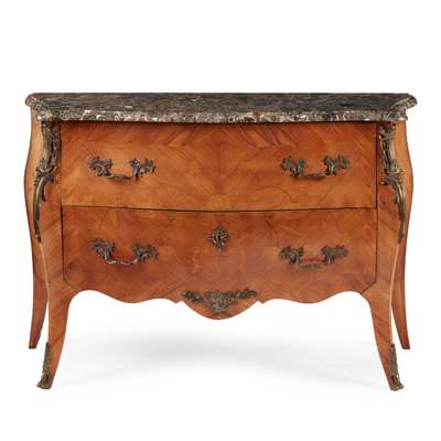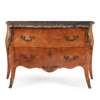 LOUIS XV STYLE KINGWOOD AND MARQUETRY MARBLE TOP COMMODE
