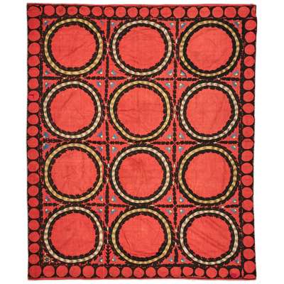 the red field with allover circular pattern, within a red border