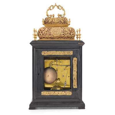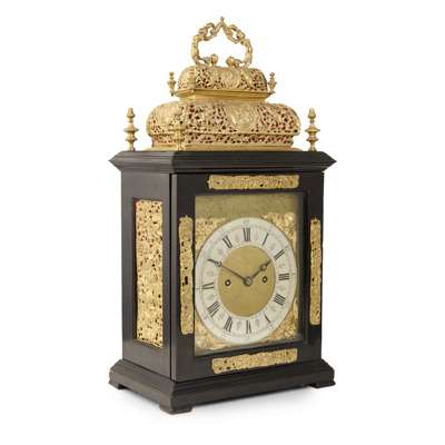 QUEEN ANNE BRASS MOUNTED EBONISED BRACKET CLOCK, BY FRANCIS REYNOLDS, KENSINGTON