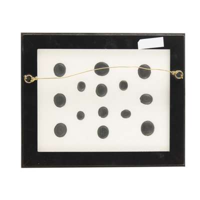 within a double-sided frame, each intaglio depicting various busts, classical figures, Venus, a cow etc; marked either Wedgwood & Bentley or W & B, all with an impressed catalogue number including 39, 73, 128, 184, 84, 147, 130, 165, 119, 217, 251, 248, 247, 222