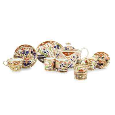 comprising a Chamberlains Worcester trio of a teacup, coffee cup and saucer, teacup marked 276; a John Rose Coalport teapot and stand of oval form, unmarked; two coffee cans, one Spode pattern 648, one John Rose, both unmarked; together with a CHAMBERLAIN'S WORCESTER INKWELL ON STAND, the well of drum form, stand marked Chamberlains Worcester 276 (9)