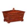 of near identical sarcophagus form, with carved lobed finials to the hinged covers above panelled fronts, one with a lead lined interior, the other paper lined, on castors, both stamped ‘T & G SEDDON’ (2)
