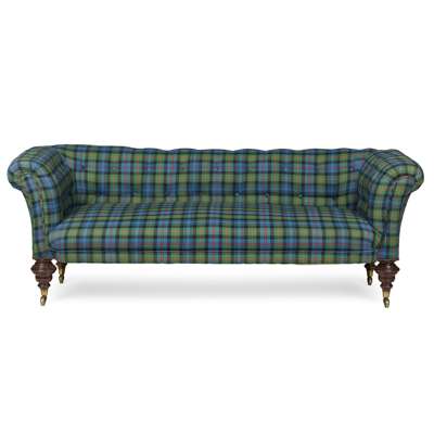 of typical form covered in buttoned tartan fabric, on turned legs with brass caps and castors