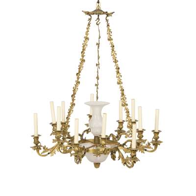 ENGLISH GILT BRONZE AND CUT GLASS TWELVE LIGHT CHANDELIER