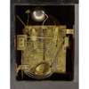 the gilt arched dial with silver chapter ring with Roman numerals and Arabic five minute markers, the arch with subsidiary ‘Chime/Silent’ and ‘Chime on 8 Bells/Westminster' dials, with pierced putti mask spandrels, the large moulded arched case with urn and berry finials, the front dial flanked by caryatid appliques, the sides with pierced sunburst marks gilt brass grills, on cast scroll and paw bracket feet, the triple train chain fusée movement striking on a large coiled steel gong and chiming on a pin wheel activated nest of eight bells