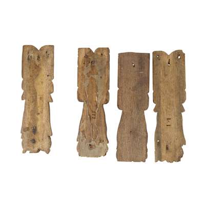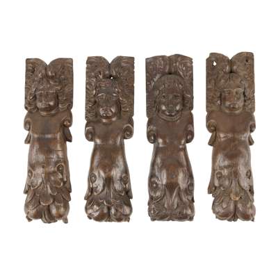 SET OF FOUR CARVED OAK FIGURAL APPLIQUES