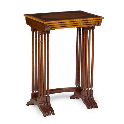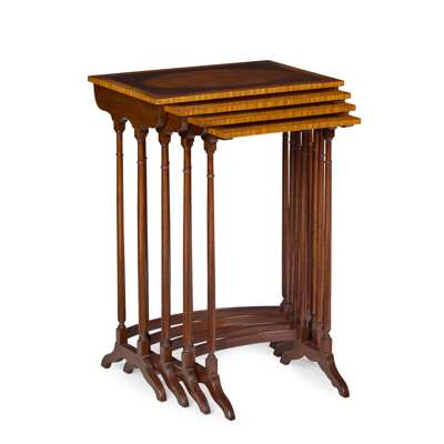 EDWARDIAN SATINWOOD AND YEW NEST OF TABLES