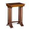 the rectangular veneered tops with satinwood crossbanding centred by an oval yew medallion, raised on turned pairs of trestle legs joined by single curved stretchers (4)