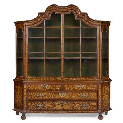DUTCH WALNUT AND FLORAL MARQUETRY DISPLAY CABINET