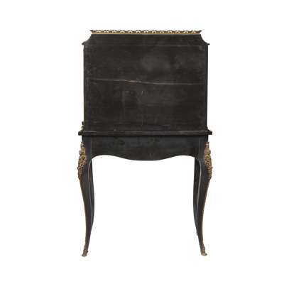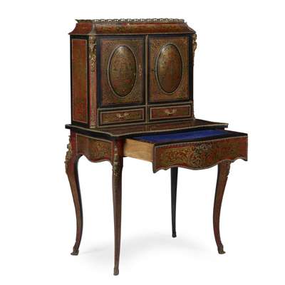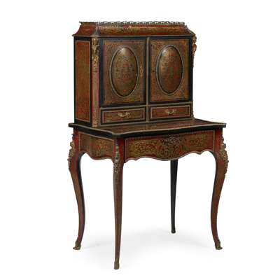 FRENCH RED TORTOISESHELL AND EBONISED BOULLE MARQUETRY BONHEUR DE JOUR Y