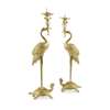 PAIR OF FRENCH JAPONISME BRASS CRANE AND TURTLE CANDLESTICKS