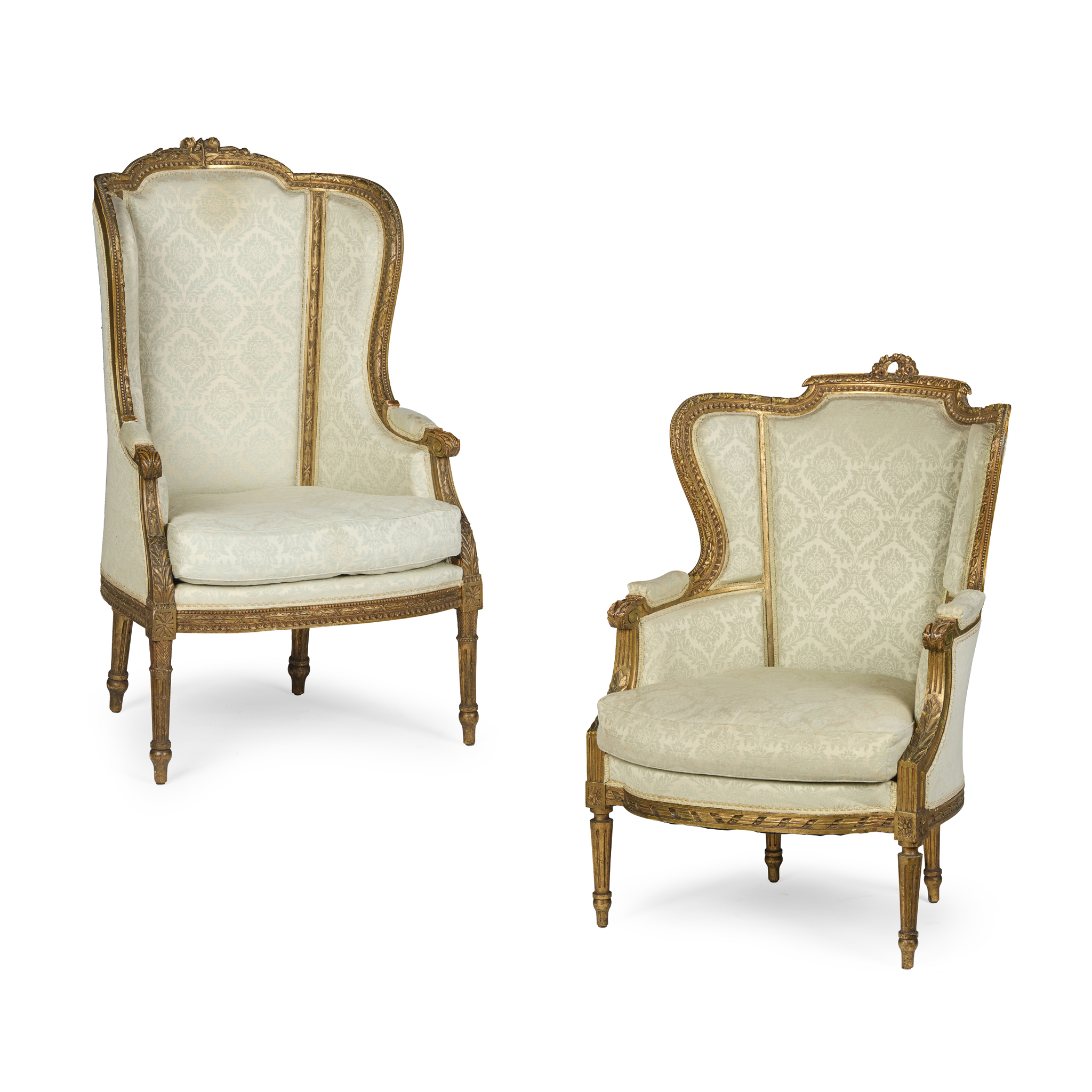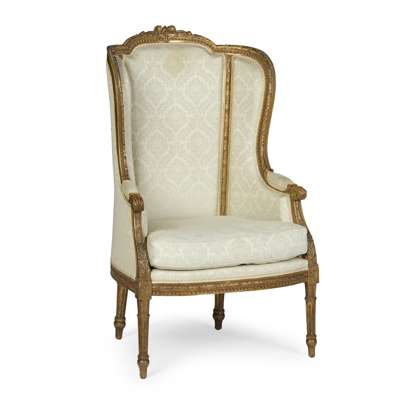 NEAR PAIR OF LOUIS XV STYLE GILTWOOD WING ARMCHAIR