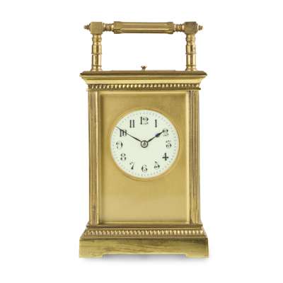 FRENCH LACQUERED BRASS REPEATING CARRIAGE CLOCK