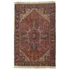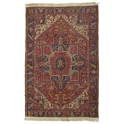 the red field with indigo and salmon pink star medallion, ivory and indigo spandrels, within indigo border