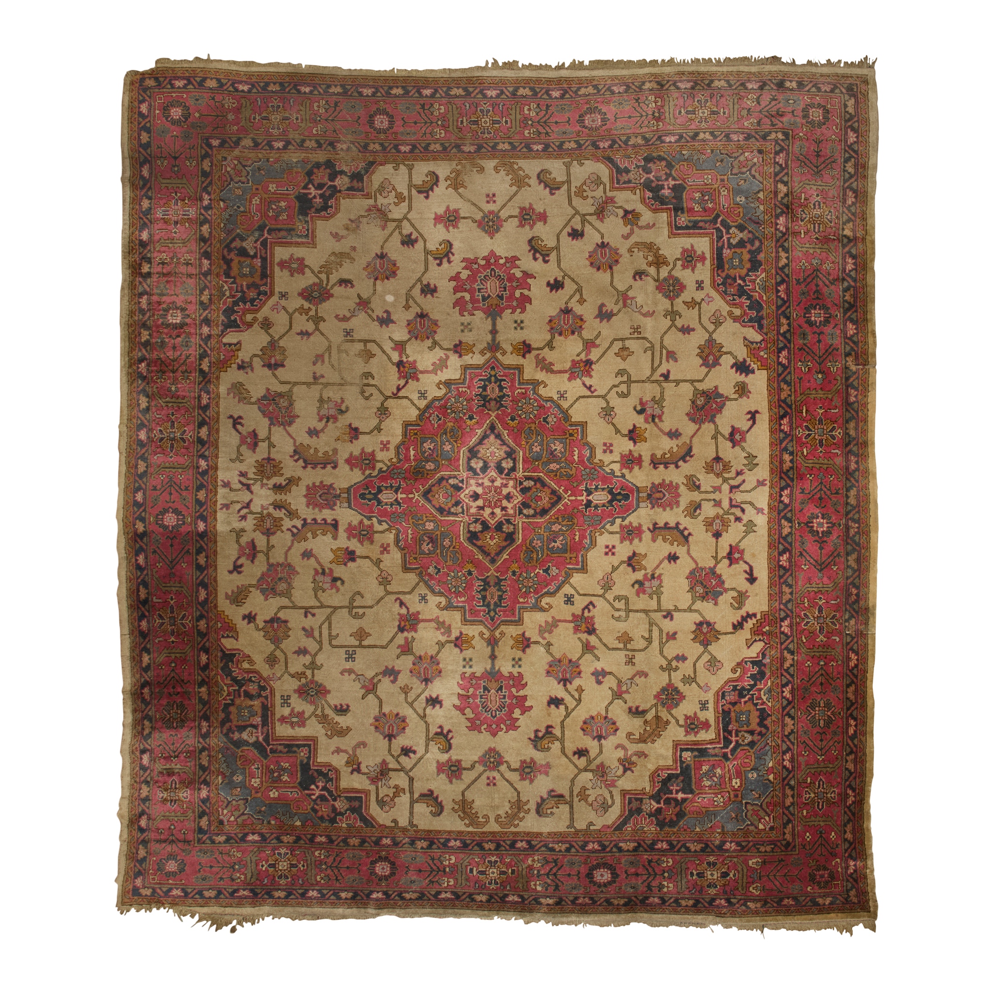 the cream field with red and indigo medallion, similar spandrels, within red border