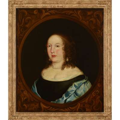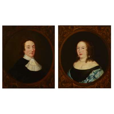 With date 1665, feigned oval with leaf decoration, oil on canvas, and a companion, a pair, his wife (2)