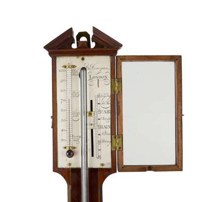 GEORGE III MAHOGANY STICK BAROMETER, BY L. DONAGAN, LONDON