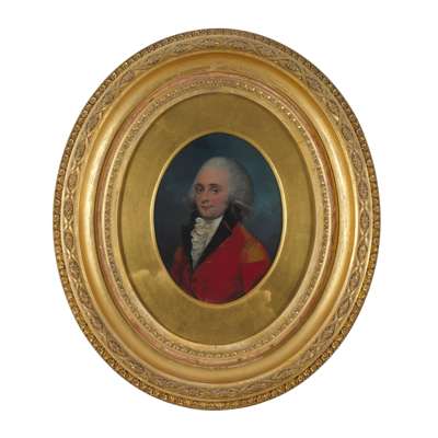 Oval, oil on panel, and a companion, a pair; ‘A Gentleman in Blue Jacket’ (2)