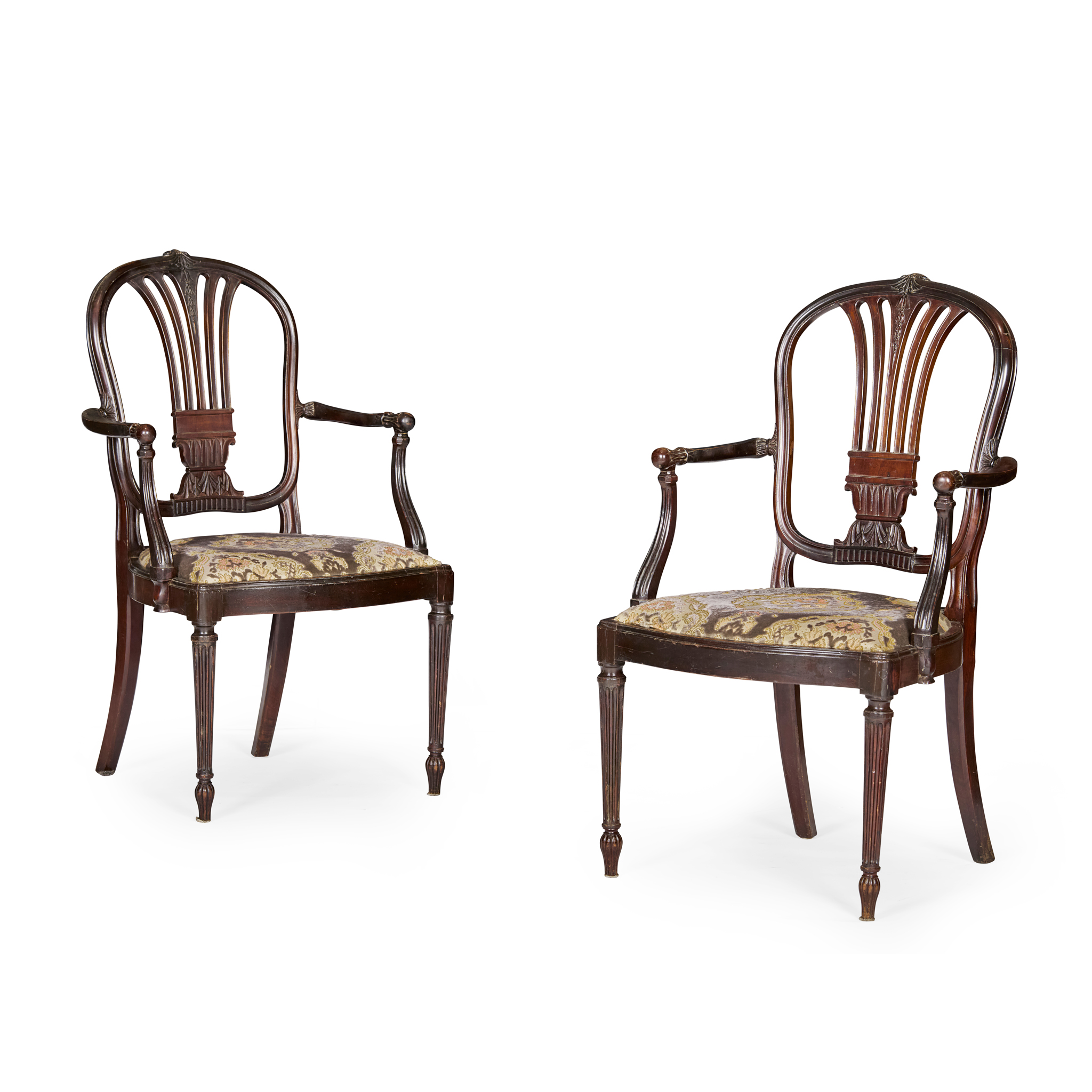 PAIR OF GEORGIAN STYLE MAHOGANY ARMCHAIRS, AFTER A DESIGN BY JOHN LINNELL
