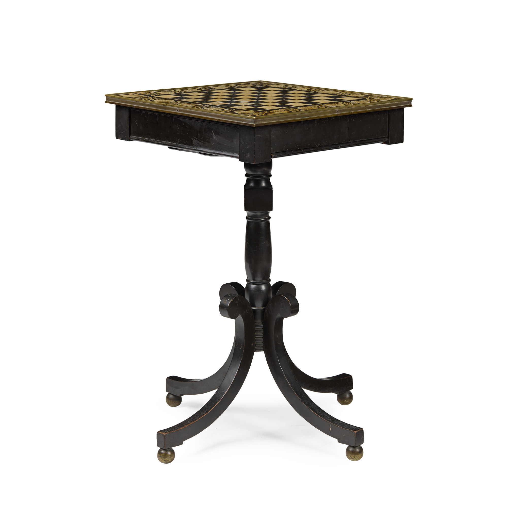 REGENCY EBONISED AND PENWORK GAMES TABLE