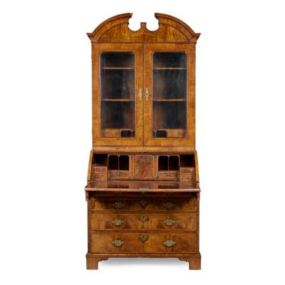 QUEEN ANNE WALNUT BUREAU BOOKCASE