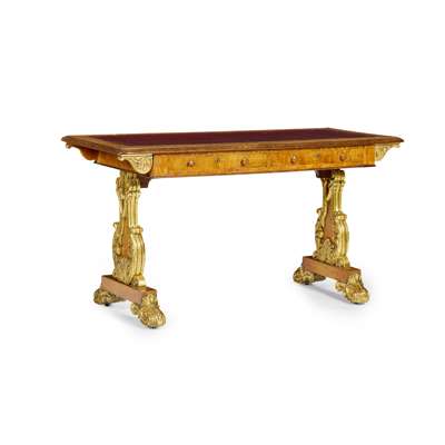 LATE REGENCY GILTWOOD AND BLONDE MAHOGANY LIBRARY TABLE
