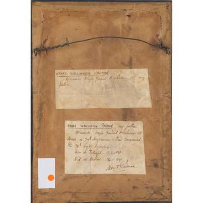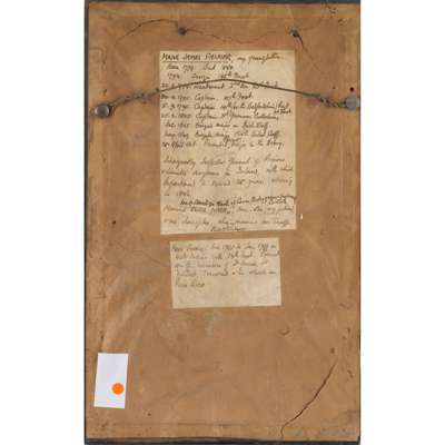 to include Major James Palmer and Mrs Eliza Palmer, their son Henry Wellington Palmer, and daughter Priscilla Palmer; together with a pair of portraits of Mr George Tuthill with his dog Mirabelle and Mrs Catherine Tuthill, heightened with white and gilt, all in ebonised and gilt frames (6)