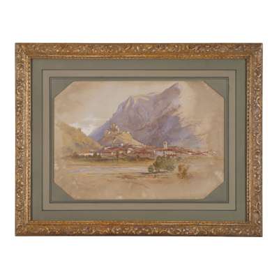 This watercolour relates to a lithograph in Lear's Illustrated Excursions in Italy published in 1846. Queen Victoria was so impressed by this ambitious work of two volumes illustrating the artist's travels through Italy in 1842-43 that she appointed Lear to give her a series of drawing lessons in the summer of 1846.