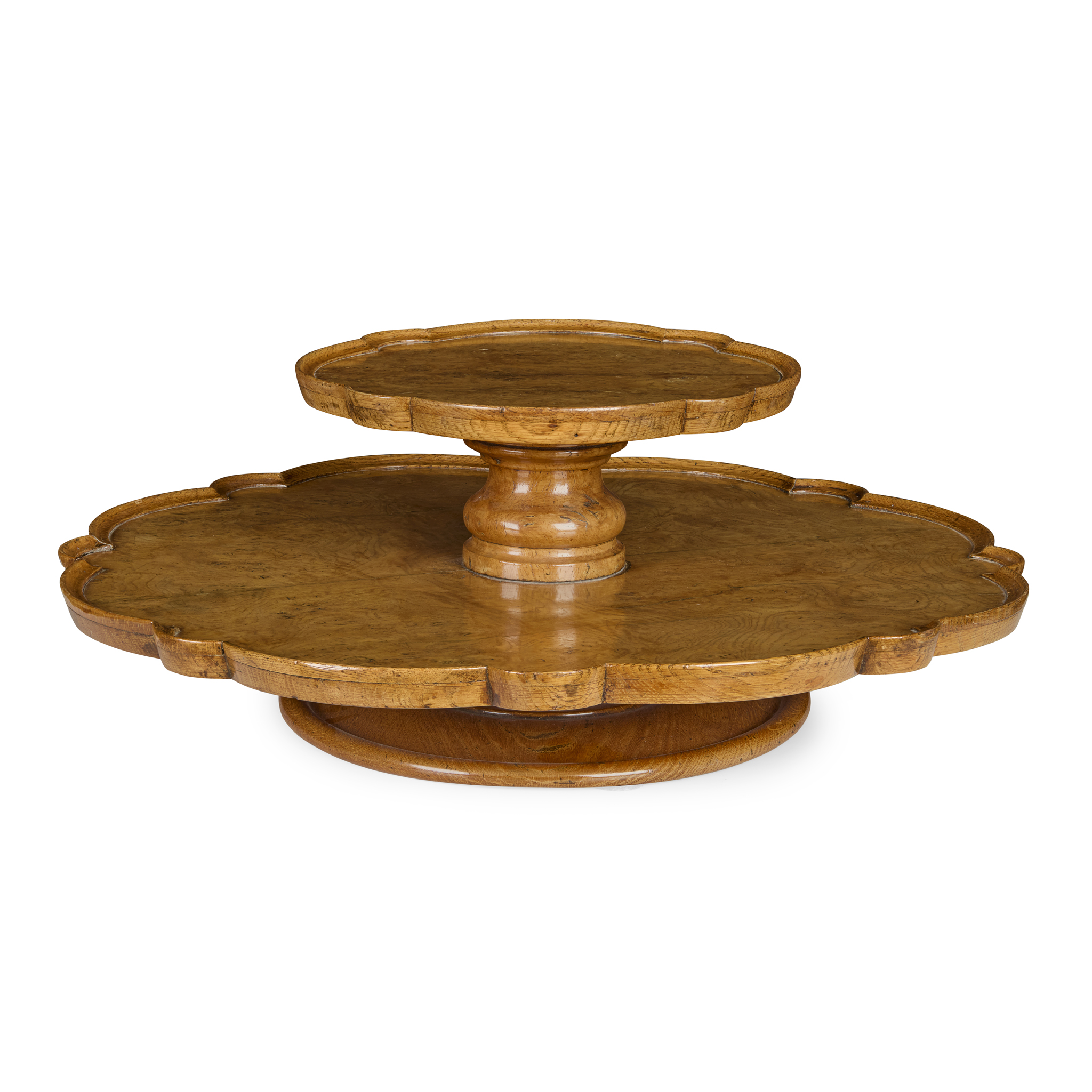 having two lobed and graduated tiers with moulded rims, on a spreading circular foot