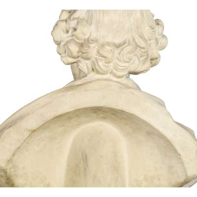This bust is most likely based on the bust by Scheemakers in Westminster Abbey, made during the Shakespeare revival in the 18th century. The earliest known example of the present model in the Wren Library, Cambridge.