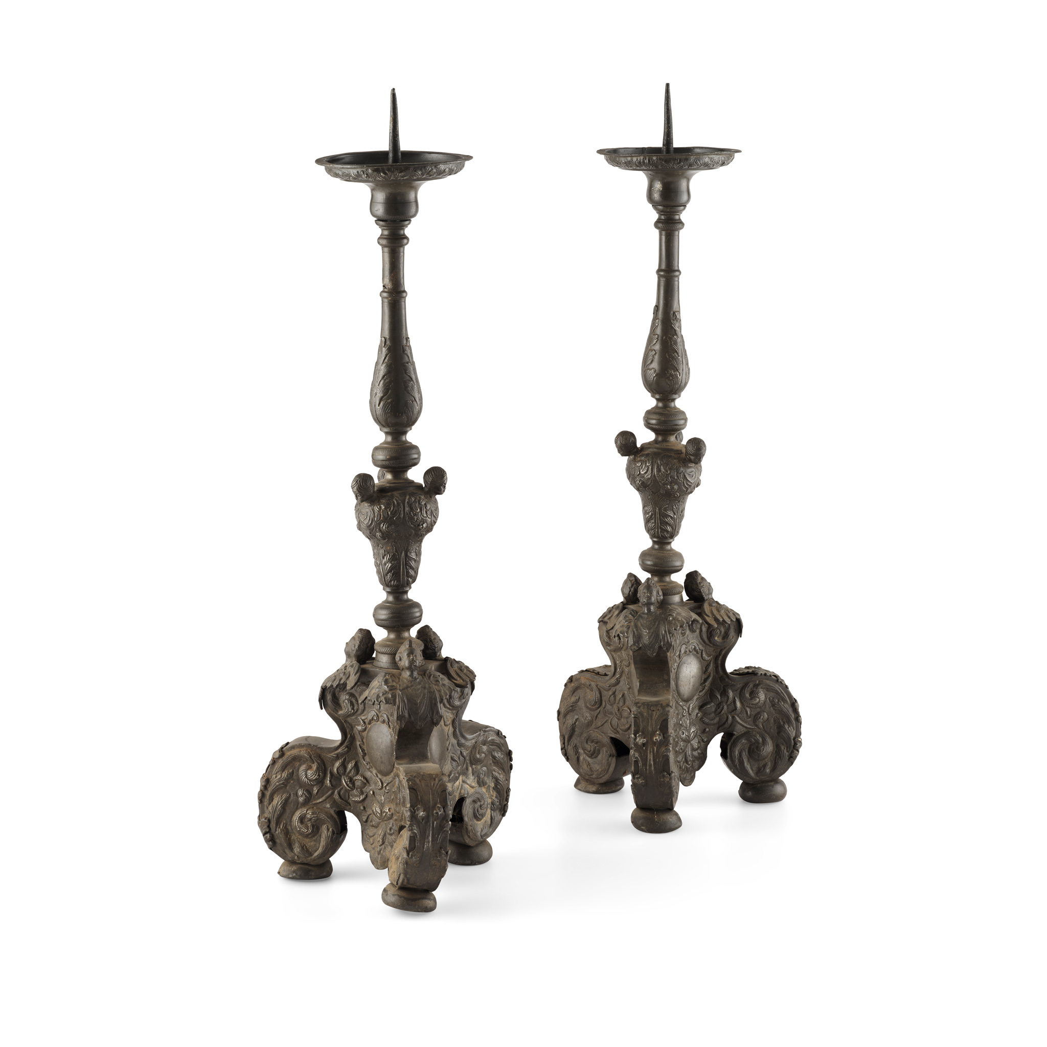 PAIR OF CONTINENTAL RENAISSANCE STYLE PEWTER PRICKET STICKS
