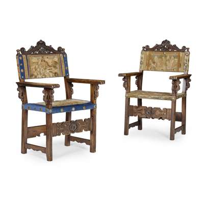 PAIR OF CONTINENTAL WALNUT ARMCHAIRS