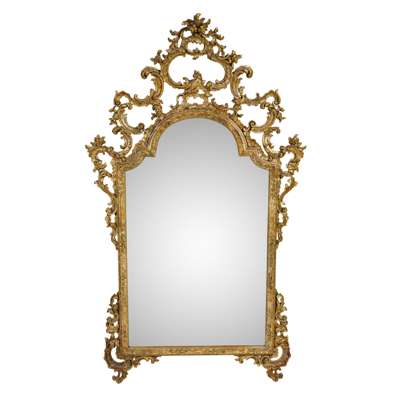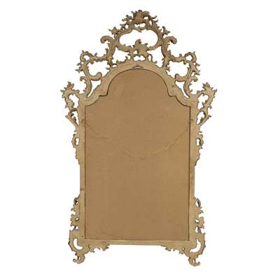 the arched mirror plate in an open work frame with C scrolls, rocaille, flowers and acanthus scrolls