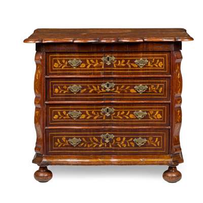DUTCH WALNUT FLORAL MARQUETRY CHEST OF DRAWERS