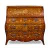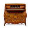 DUTCH WALNUT AND FLORAL MARQUETRY BOMBE CYLINDER BUREAU
