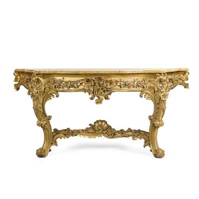 LOUIS XV STYLE GILTWOOD MARBLE TOPPED CONSOLE TABLE