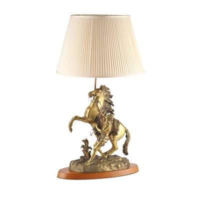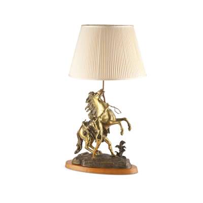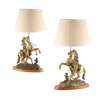 PAIR OF FRENCH BRASS MARLY HORSE FIGURE GROUPS, AFTER COUSTOU