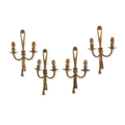 SET OF FOUR FRENCH GILT BRASS WALL LIGHTS