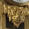 the cream enamel dial with black painted Roman numerals and Arabic five minute markers, signed ‘Chevrau, A Paris’, fine pierced gilt brass hands, the Neoclassical case topped with a drapery-hung urn finial over a turned socle and a Vitruvian scrolled frieze, the dial with a glazed oculus flanked by angled ram's mask capped pilasters surmounted by acanthus finials, pierced side panels, the short trunk with glazed pendulum aperture, centred by a lion skin mask and swags, the lower section with four small pinecone finials and a central dentil moulded, fruiting and foliate boss, the twin train movement with anchor escapement, silk thread suspension, outside countwheel, striking a bell