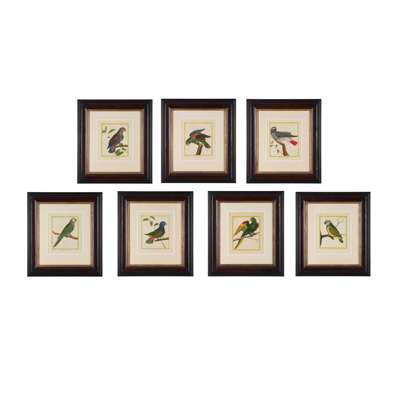 SET OF SEVEN FRENCH HAND COLOURED ENGRAVINGS OF PARROTS AND PARAKEETS