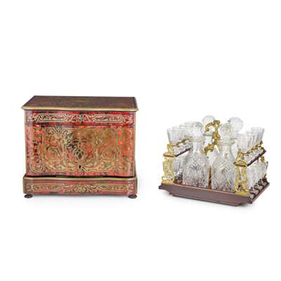 FRENCH EBONISED, RED TORTOISESHELL BOULLE MARQUETRY DECANTER BOX